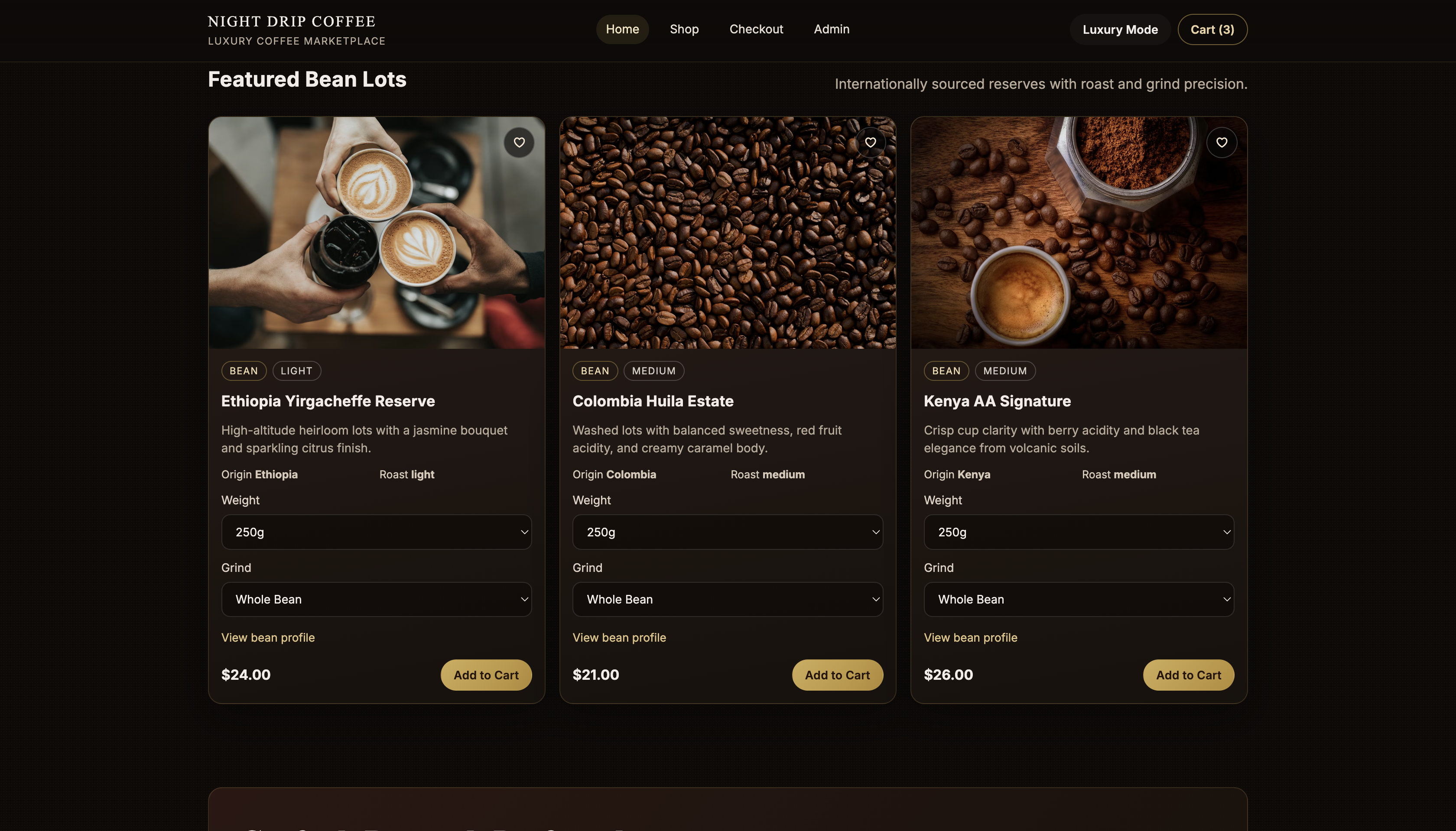 This project involved designing and developing a responsive web app for the Nightdrip Coffee web application. Nightdrip Coffee is a platform that provides a seamless ordering experience for coffee lovers. The landing page was created using HTML, CSS, and JavaScript, with a focus on user experience and visual appeal. The design incorporated modern aesthetics and intuitive navigation to effectively showcase the features and benefits of the Nightdrip Coffee application. The project aimed to attract potential users and provide them with a clear understanding of the application's value proposition.